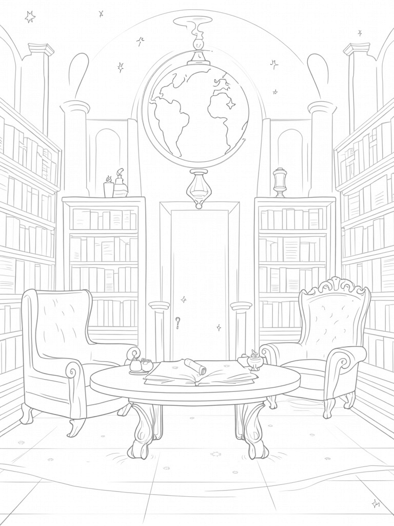 Every corner of this library holds a little magic. A giant hourglass sits quietly, its sparkling sand resembling tiny stars, while a comfy armchair, covered in enchanted fabrics, invites you to sit down and get lost in a story. Whether you're a young wizard or just curious about the wizarding world, this scene is packed with inspiration for your own tales!