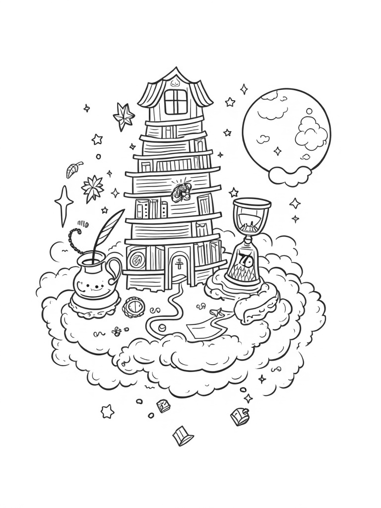 Check out this free, printable coloring page featuring a floating library in the clouds. With its magical details and whimsical charm, it's perfect for kids who love Harry Potter and all things magical!