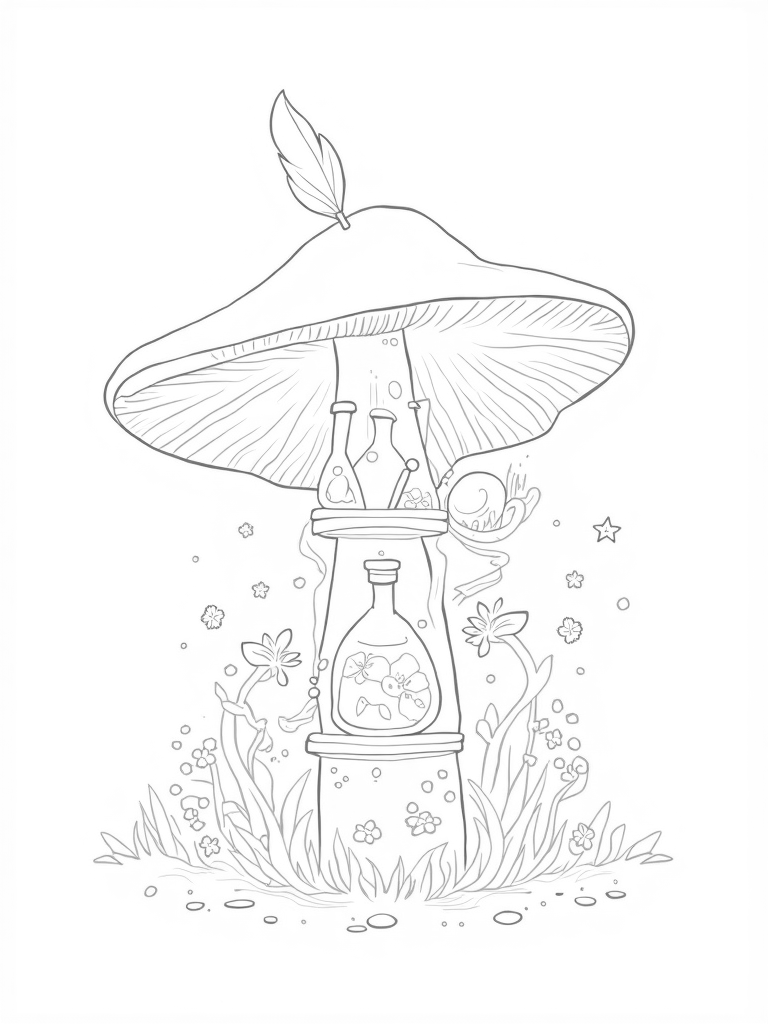 Potion Lab Inside a Giant Mushroom Coloring Page