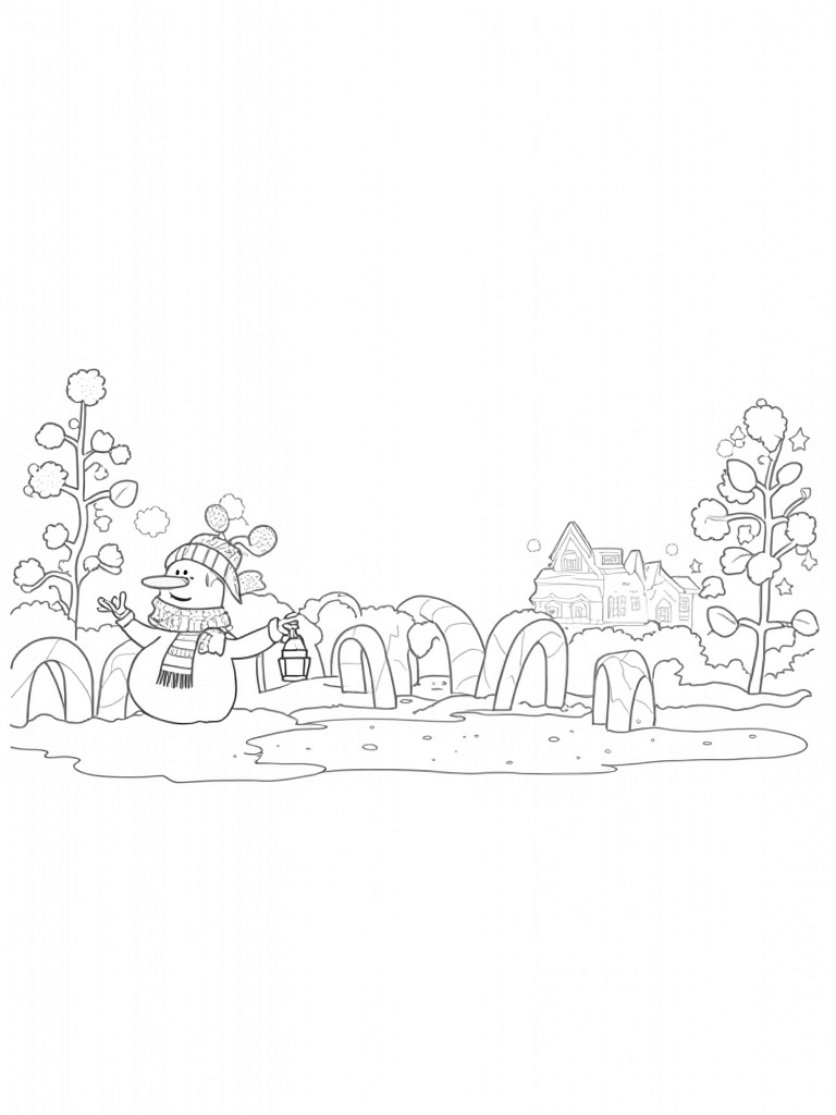 Giant Snowman and Candy Cane Wonderland Coloring Page