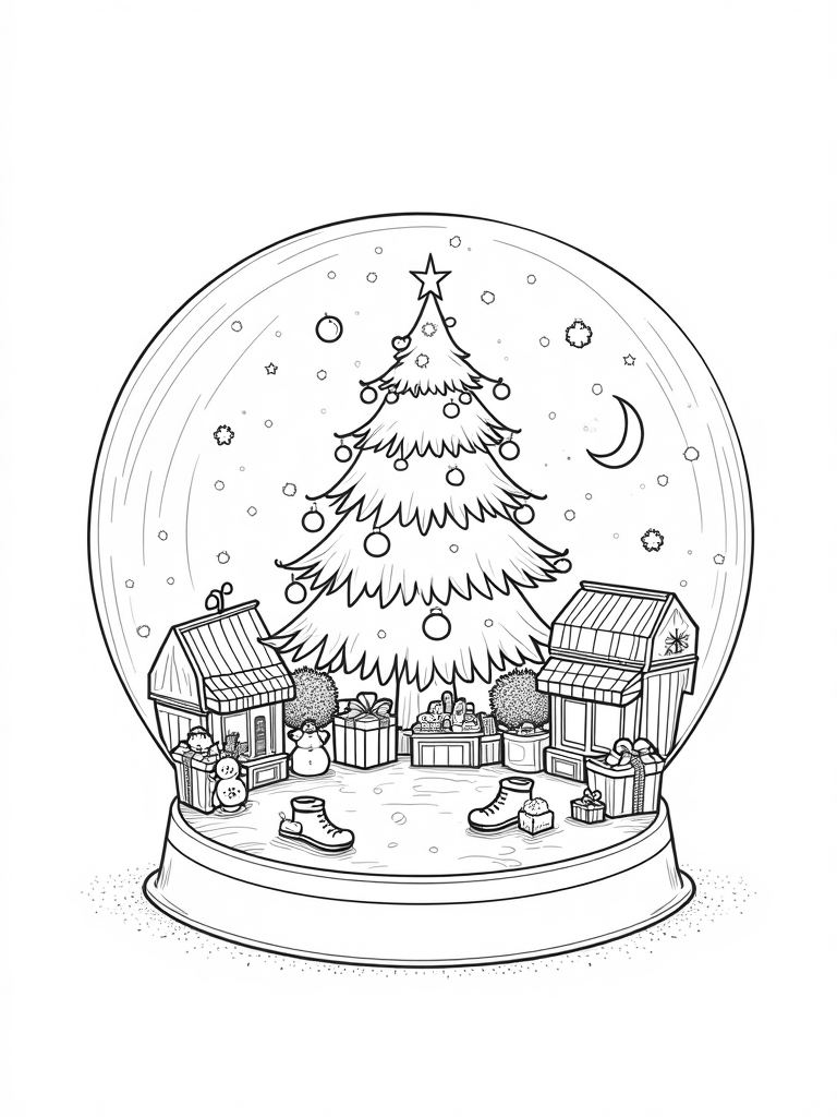 Holiday Marketplace in a Snow Globe Coloring Page