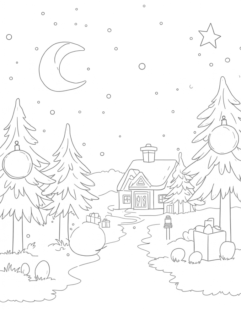As you color, don’t forget the swirling snowflakes dancing around a cluster of twinkling stars in the night sky. There’s so much to fill with color in this enchanting winter wonderland!