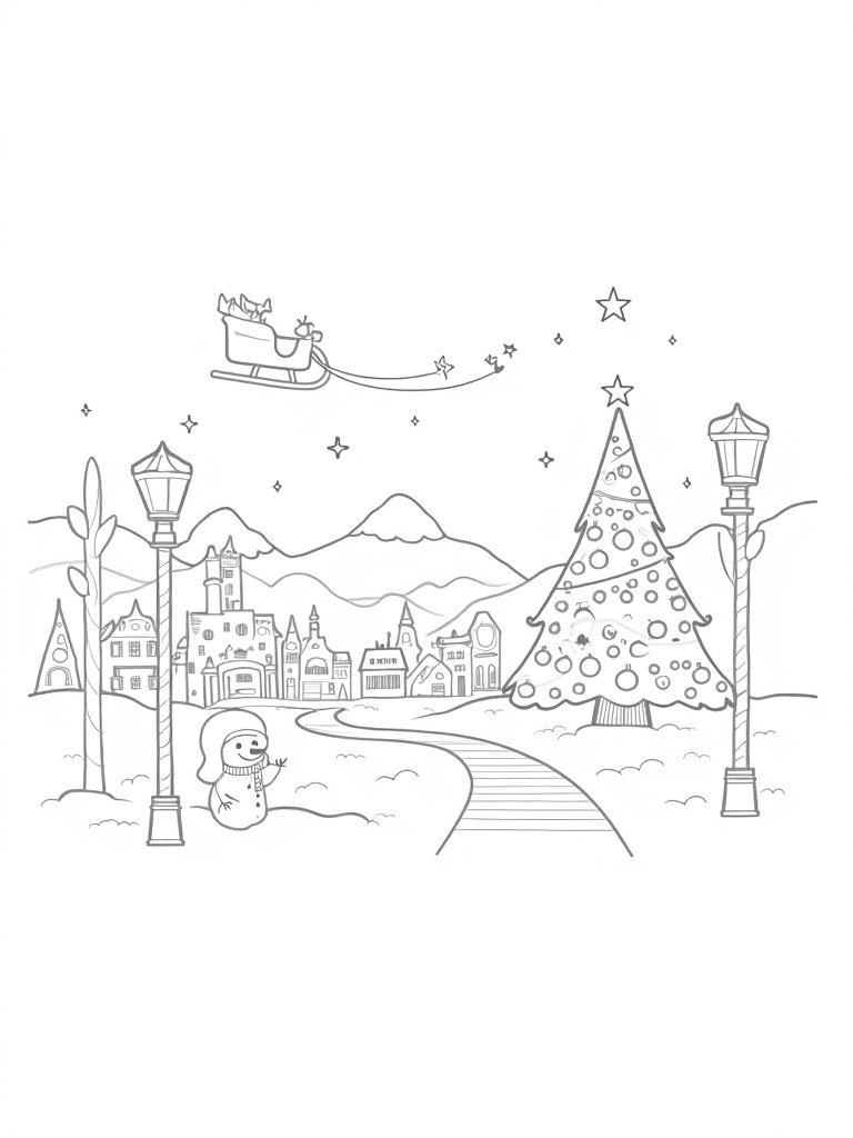 The town square is where all the magic happens, with a gigantic ornament tree twinkling with oversized baubles and star-shaped lights. It’s the perfect spot for everyone to gather and celebrate. And let’s not forget the cheerful snowman holding a colorful scarf, looking ready for a snowball fight!