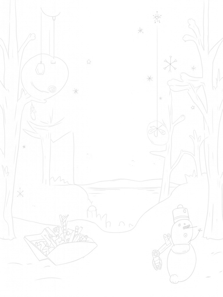 Check out this fun, free, and printable coloring page featuring a winter wonderland filled with oversized ornaments, a snowman, and sparkling ice sculptures. Perfect for holiday fun and creativity!
