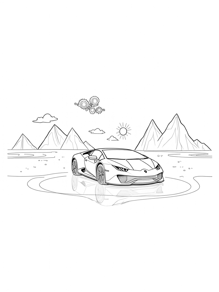 Check out this free, printable coloring page featuring a crystal Lamborghini on a reflective lake. Perfect for car lovers, this coloring page is sure to spark creativity and imagination!