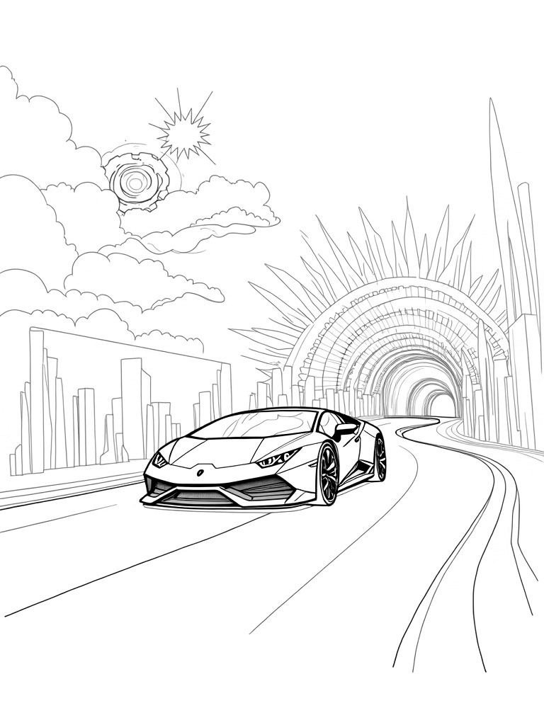 Futuristic Lamborghini in a Crystal Tunnel Coloring Page