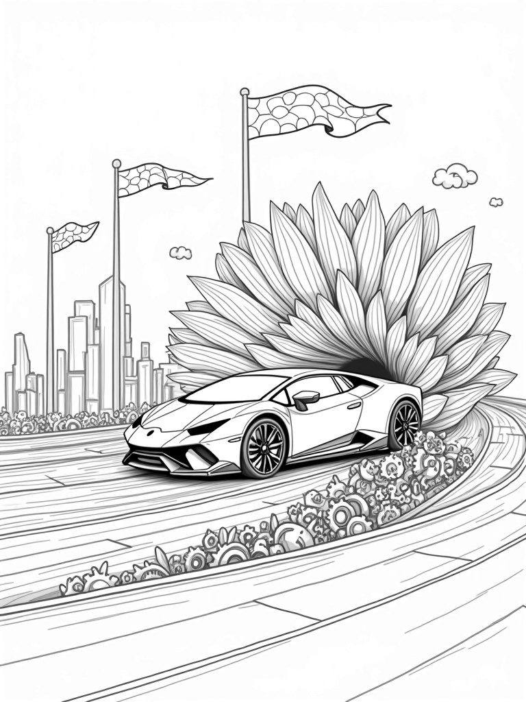 Futuristic Lamborghini in a Mechanical Flower Coloring Page
