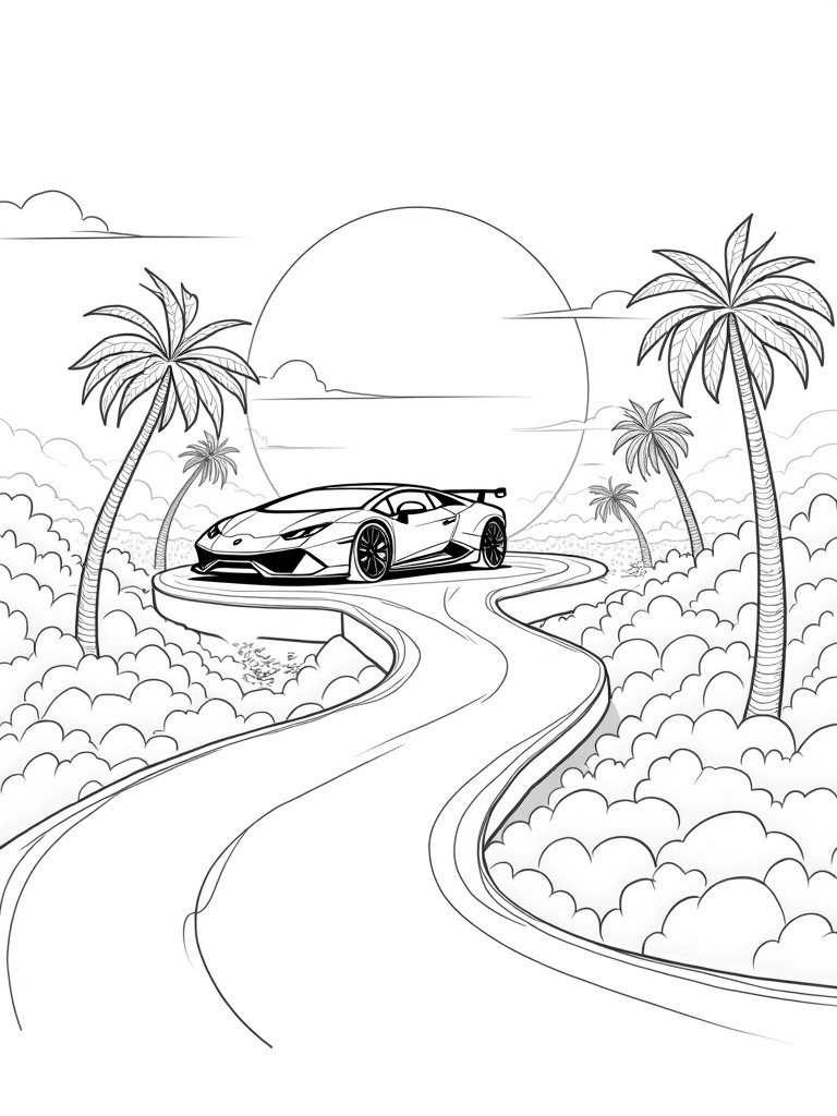 Check out this free, printable coloring page featuring a futuristic Lamborghini on a cloud platform! Perfect for kids who love cool cars and imaginative landscapes, it's a fun way to bring vibrant colors to life.