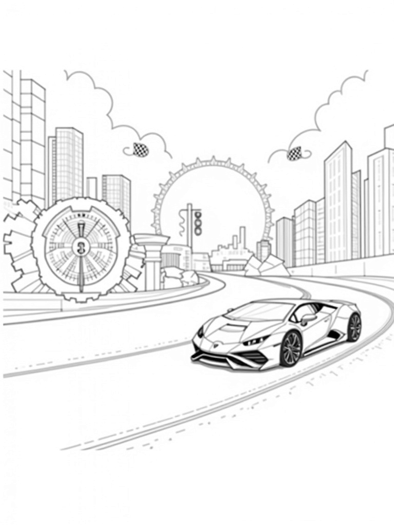 Futuristic Lamborghini on a Colorful Racetrack Coloring Page