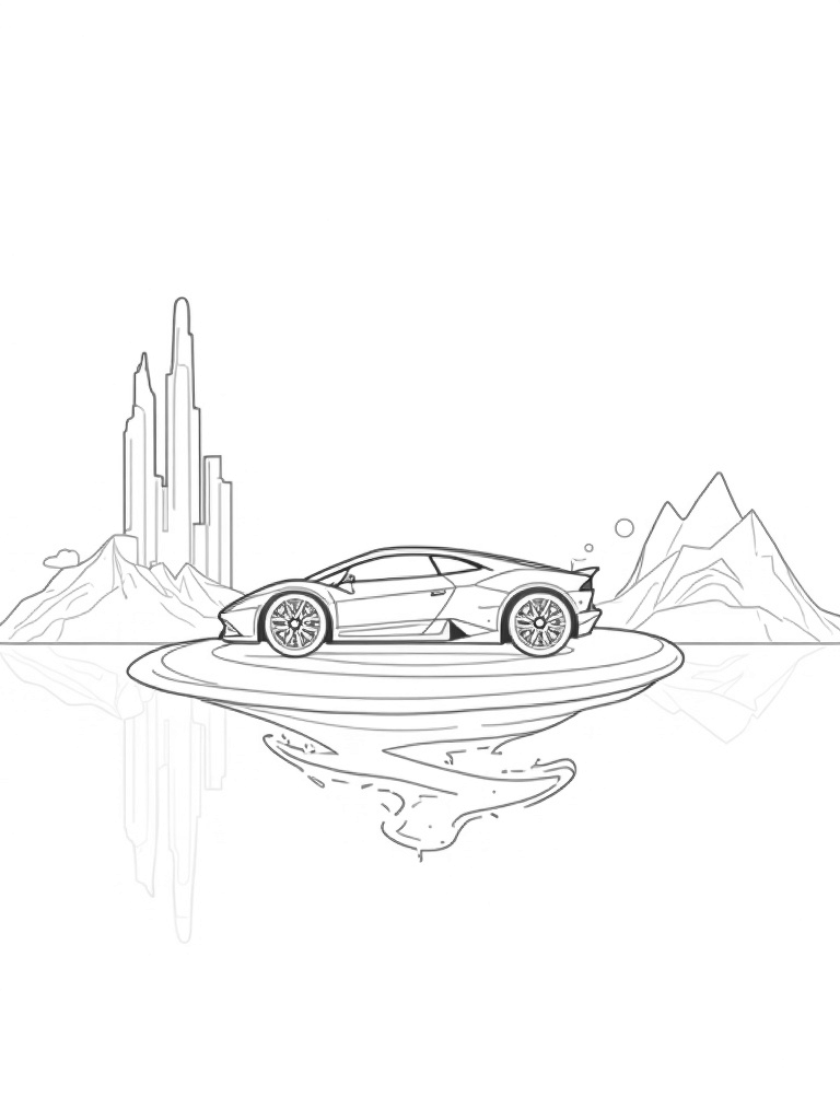 Futuristic Lamborghini on a Floating Glass Platform Coloring Page
