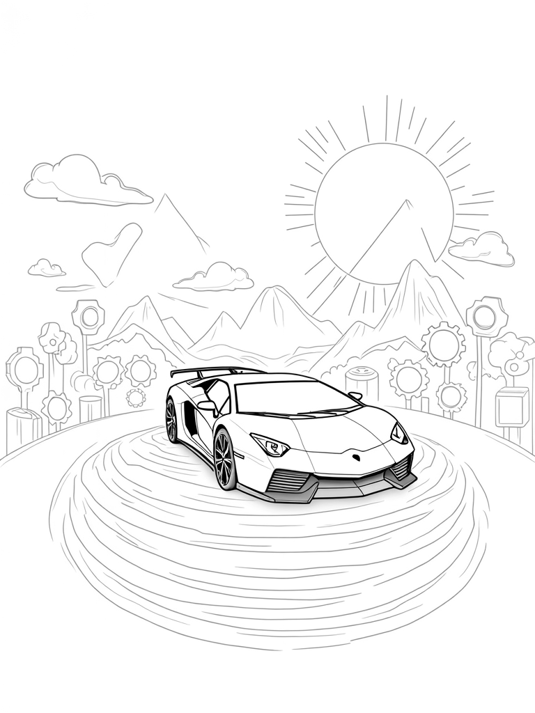 Check out this free, printable coloring page featuring a futuristic Lamborghini on a floating platform! Perfect for kids who love cars, this coloring page is sure to spark creativity.