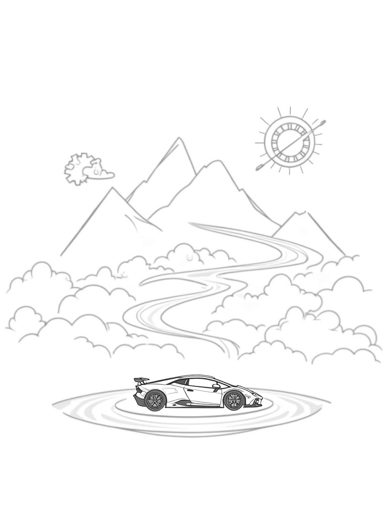 Futuristic Lamborghini on a Floating Platform Coloring Page