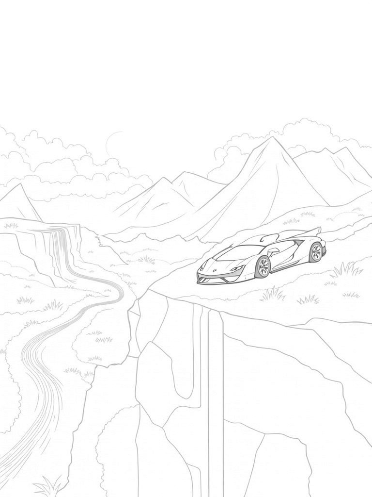 Futuristic Lamborghini on a Sunset Cliff Coloring Page