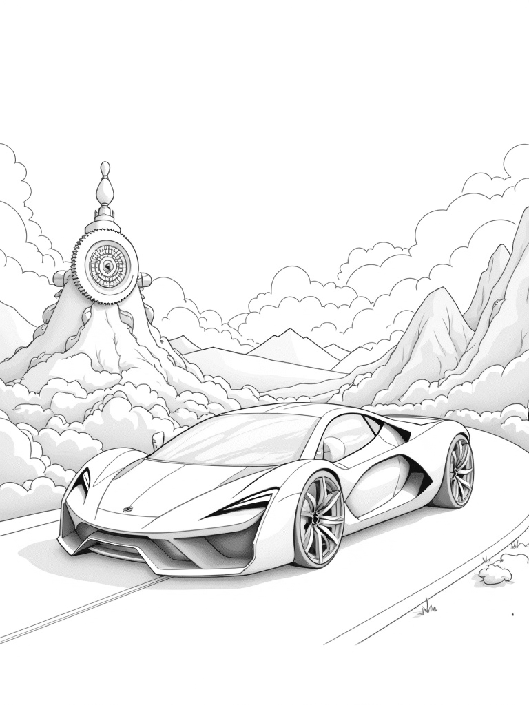 Futuristic Lamborghini on a Winding Mountain Road Coloring Page
