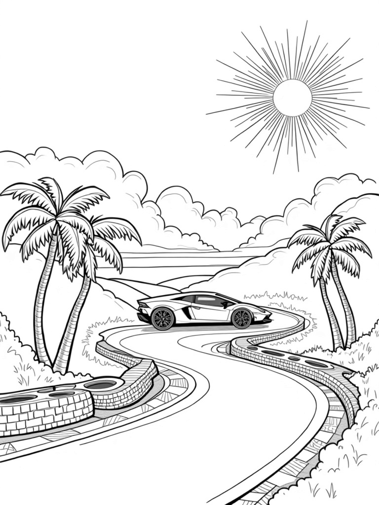 Futuristic Lamborghini on a Winding Racetrack Coloring Page