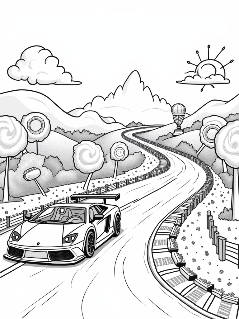 Racing Lamborghini in a Candy Land Coloring Page