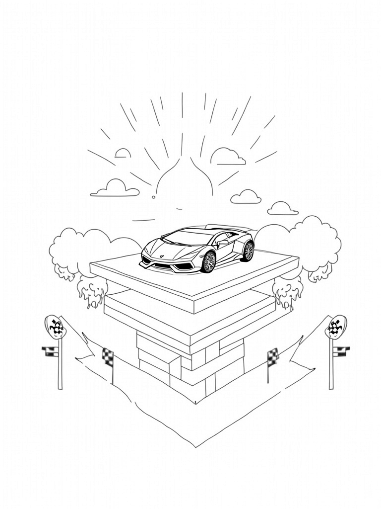 Sleek Lamborghini on a Floating Platform Coloring Page