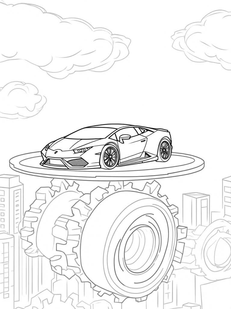 Sleek Lamborghini on a Floating Platform Above a Futuristic City Coloring Page