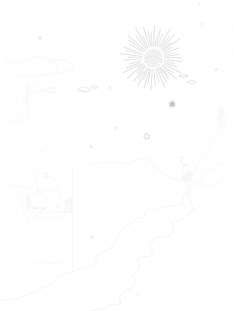 As you color this scene, let your imagination run wild! You can choose any colors for the clouds, the sparkling stars, and even the giant sun with its intricate patterns. Each stroke of your crayon or marker can turn this dreamscape into your very own magical place. What colors will you pick for the trees and the sky?