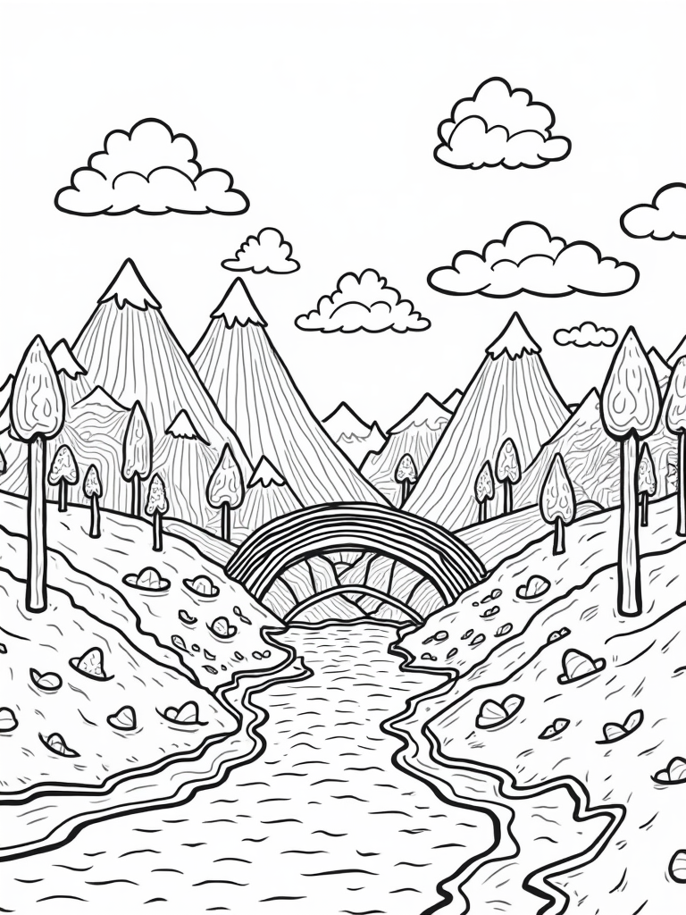 Ice Cream Mountains and Chocolate Rivers Coloring Page