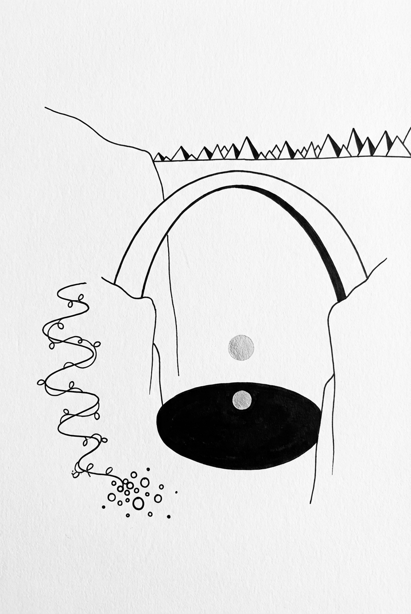 Since the drawing is all about bold strokes, you can play with contrast—think deep shades for the stone and bright hues for the lanterns. The lake’s black surface is perfect for a splash of midnight blues or purples, and the moon gives you a chance to experiment with metallic or shimmering colors. Let the vine staircase guide your brush; you might even add some extra leaf details if you feel like it.