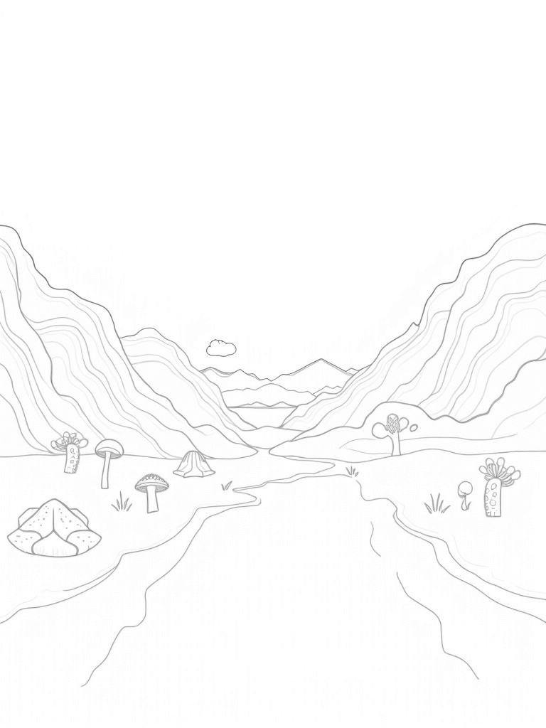 Candy Cane Rock Formations and Giant Mushrooms Coloring Page