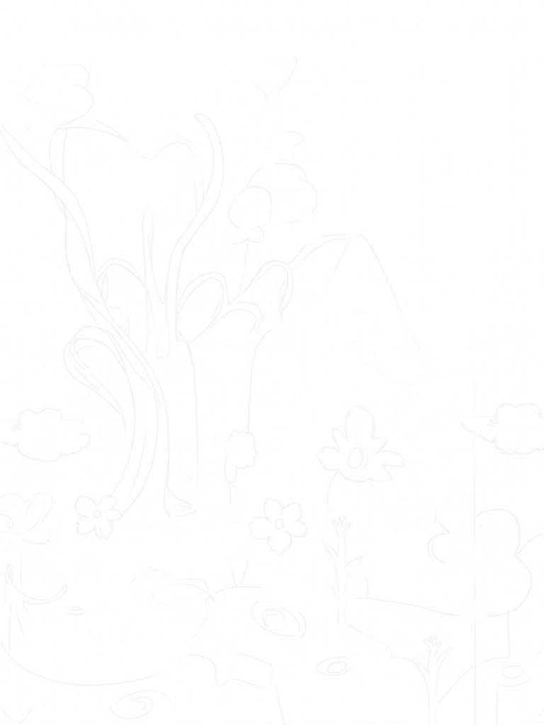 In the background, you’ll notice rolling hills shaped like geometric patterns, adding a unique twist to the scene. At the base of these hills, oversized flowers burst with vibrant shapes, inviting all sorts of imagination. And let’s not forget the fluffy clouds above, floating in playful formations and casting fun shadows on the ground.