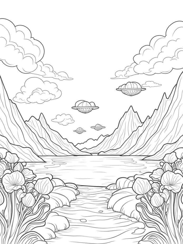 Floating Islands and Spiral Mountains Coloring Page