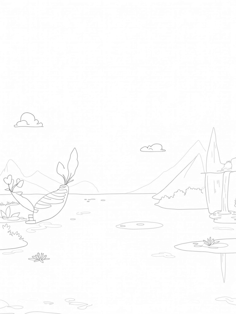 Check out this free, printable coloring page featuring a whimsical landscape of floating leaf islands and a serene lake. Perfect for kids who love nature, it’s a fun way to spark creativity while coloring in a beautiful scene!