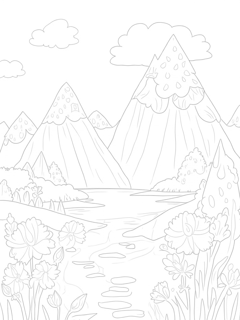 Ice Cream Cone Mountains and Colorful Lake Coloring Page