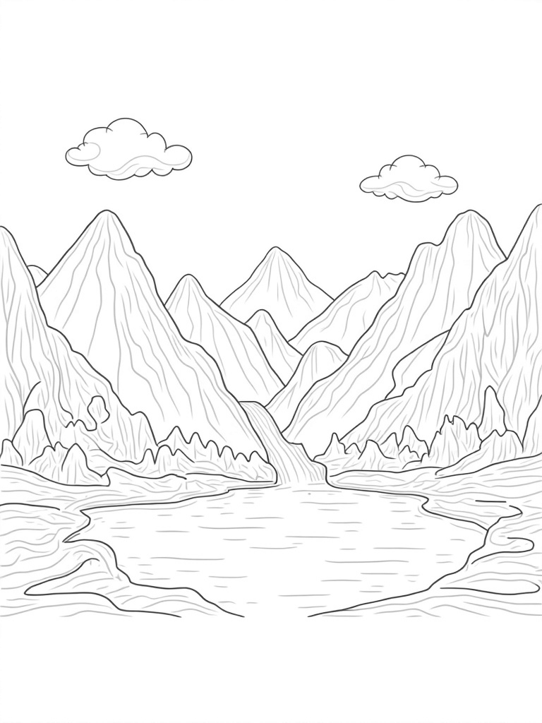 Musical Mountains with a Grand Piano Peak Coloring Page