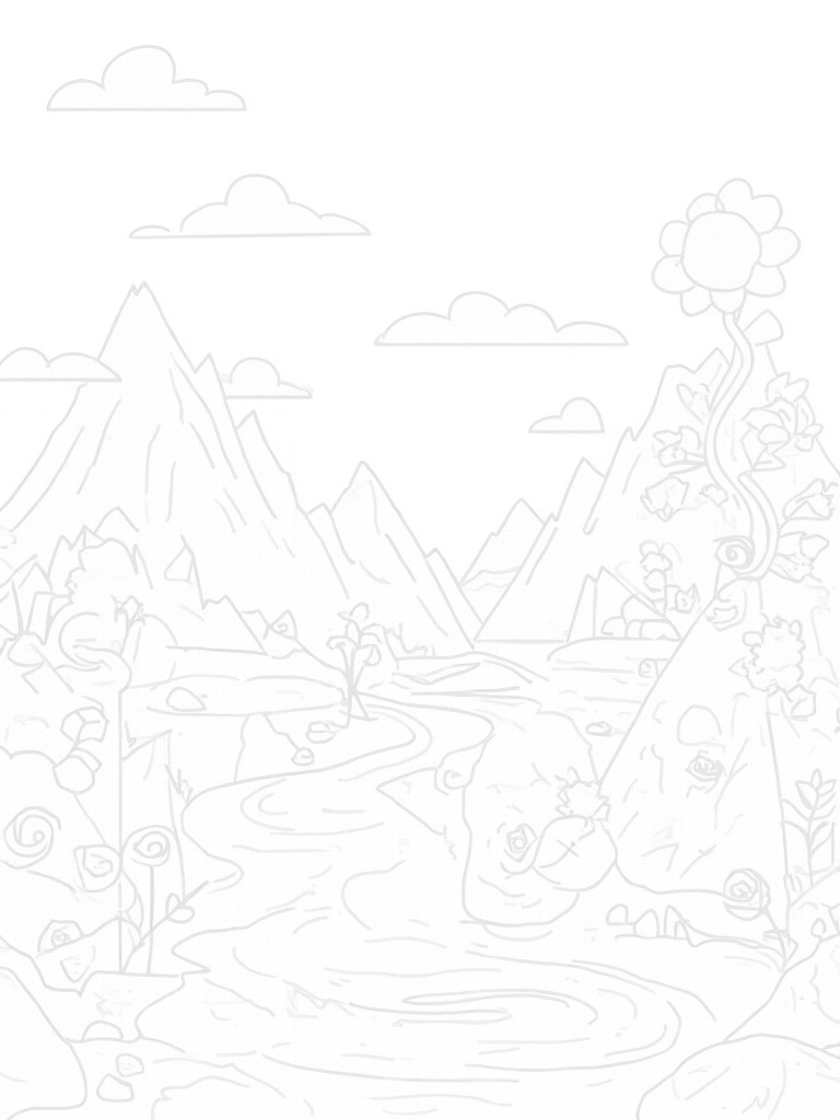 You’ll find a peaceful mountain landscape filled with towering peaks made of beautifully patterned rocks. In the foreground, a winding river flows, creating little swirls and eddies that make it look like it’s dancing. Geometric stones line the banks, adding a fun twist to the scene. And don’t forget the oversized flowers blooming by the water’s edge, their spiral petals ready for your favorite colors!