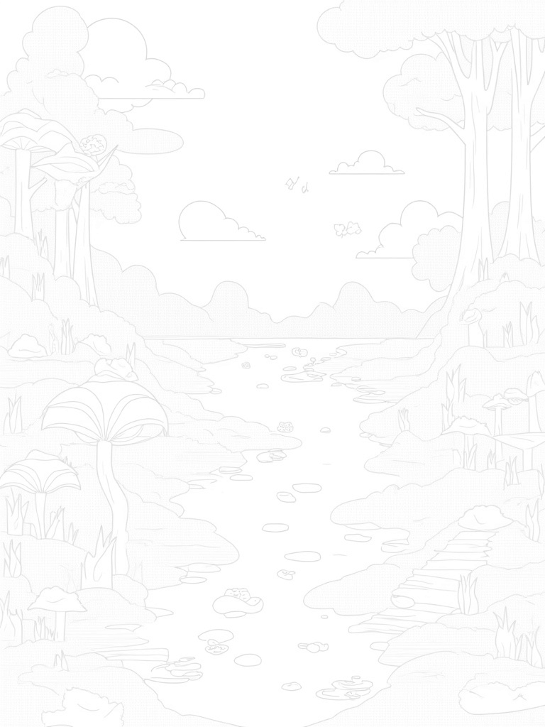 Check out this free, printable coloring page featuring a twisted landscape with a crystalline lake, musical lily pads, and oversized mushrooms. Perfect for kids who love fun nature scenes and want to get creative with their colors!