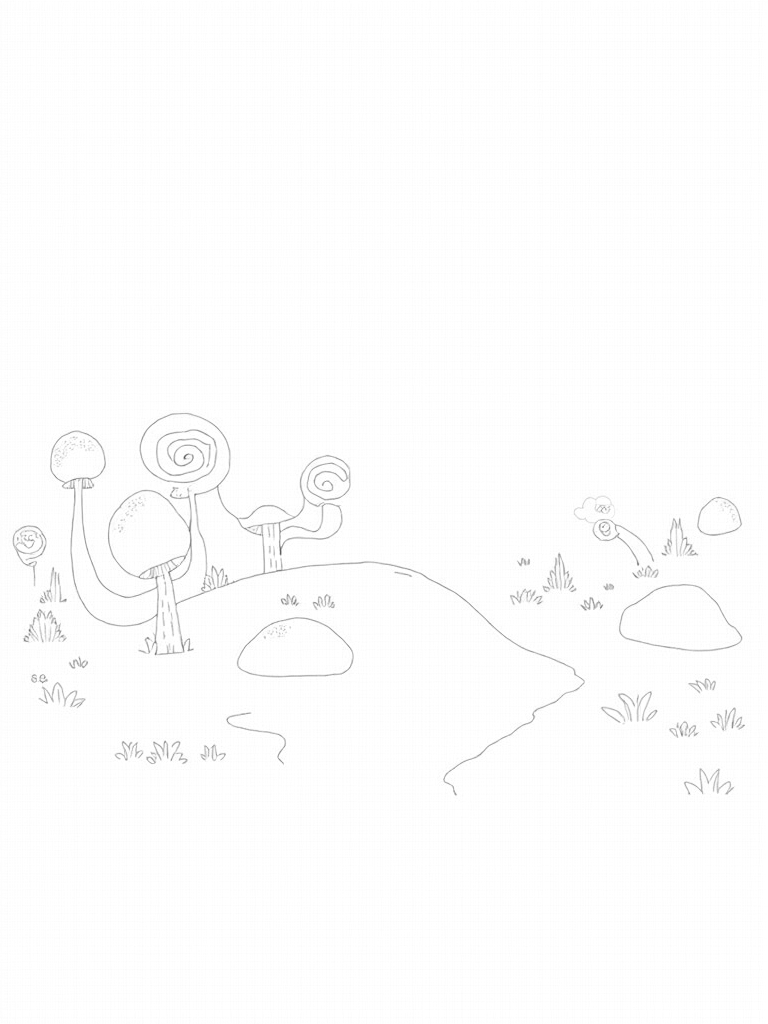 As you color, don't forget to check out the oversized flowers blooming along the riverbank. Their petals twist and curl in the most unexpected ways, adding a touch of whimsy to the scene. Scattered throughout the glade are large rocks etched with mysterious symbols that spark curiosity. And let's not forget the delicate ferns that unfurl with graceful spirals, bringing a rhythm to this peaceful landscape. Each detail invites you to create your own vibrant world!