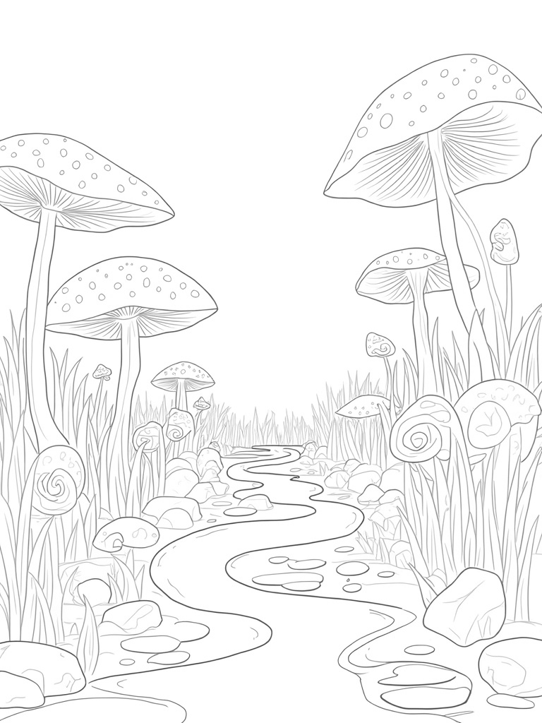Giant Flower Garden with a Twisting River Coloring Page
