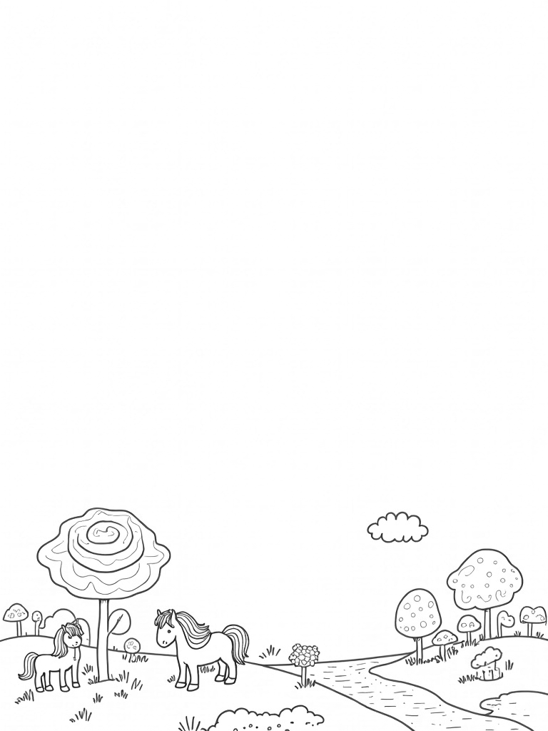 The ponies in this coloring page are not just any ponies; they’re vibrant and full of personality! Each one has unique colors that you can bring to life with your favorite crayons. And don’t forget the giant mushrooms with their playful polka dots, providing shady spots for all the little creatures that call this meadow home. The heart-shaped leaves of the tree sway gently in the breeze, creating a friendly atmosphere that’s just waiting for your artistic touch.