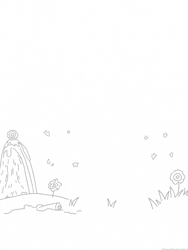 Your eyes will be drawn to the cluster of giant, blooming flowers that look like colorful pony manes swaying in the breeze. These aren’t just any flowers; they’re the kind that invites you to color them in every shade you can think of! And if you look closely, you’ll spot shimmering stars scattered throughout the scene, resting on the petals and stones, adding a magical touch to this whimsical meadow.