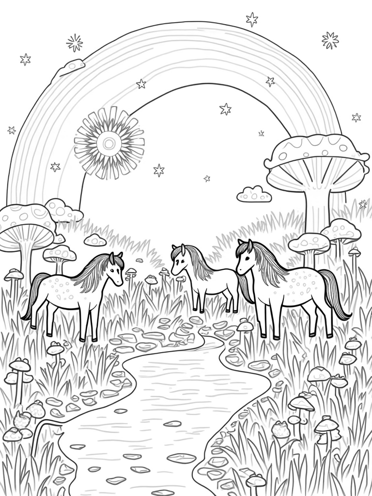 Ethereal Ponies in a Magical Meadow Coloring Page