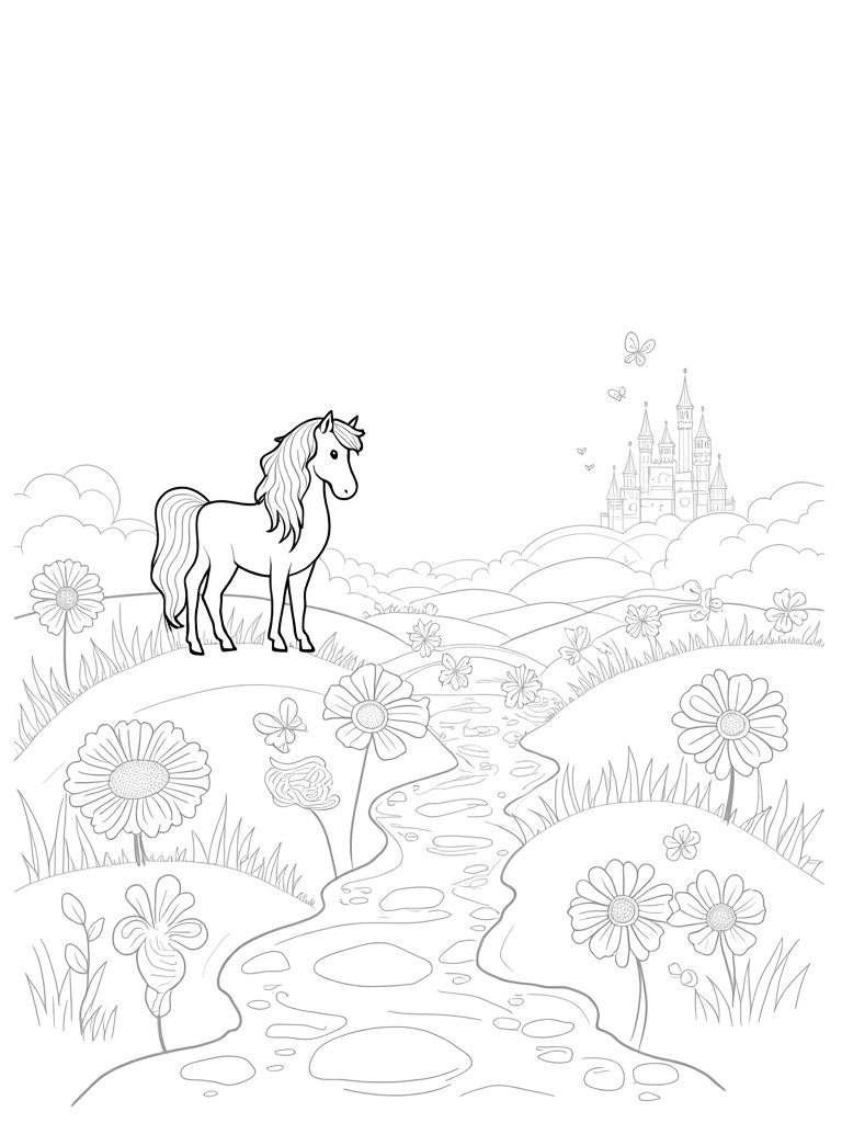 Majestic Pony in a Colorful Meadow Coloring Page