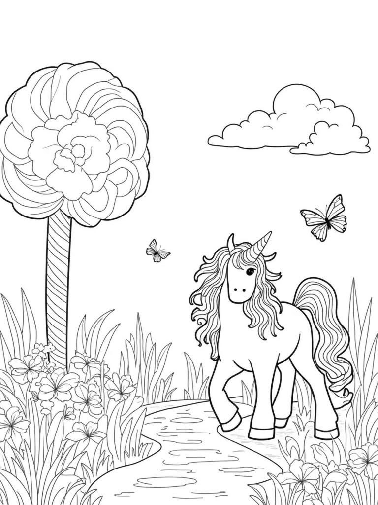 Majestic Pony in a Rainbow Meadow Coloring Page