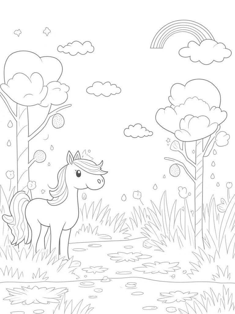 Pastel Pony in a Magical Flower Landscape Coloring Page