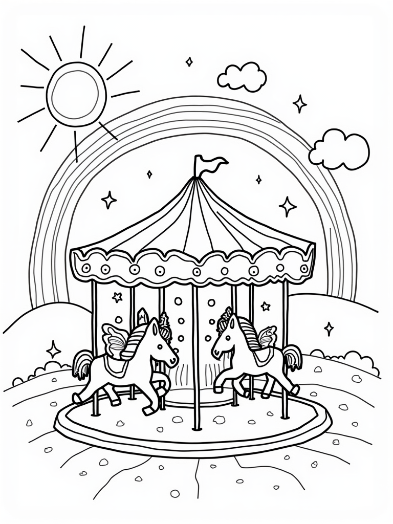 Pony Carousel Under a Big Sun Coloring Page