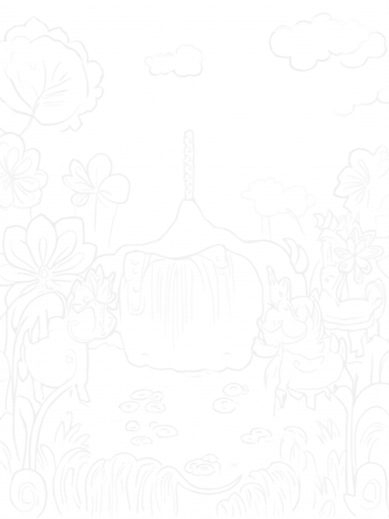 Nearby, a rainbow waterfall splashes down into a crystal-clear pond, creating a beautiful oasis where lily pads float like little islands. Just picture all the vibrant colors you can use for the waterfall and the pond! And don’t forget to look up—fluffy clouds shaped like various pony breeds drift lazily in the bright blue sky, adding a touch of whimsy to this delightful landscape.