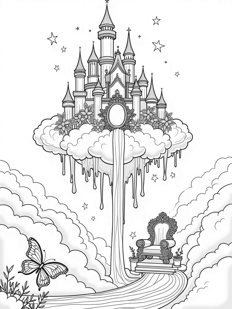 Castle on a Cloud with a Crystal Throne Coloring Page