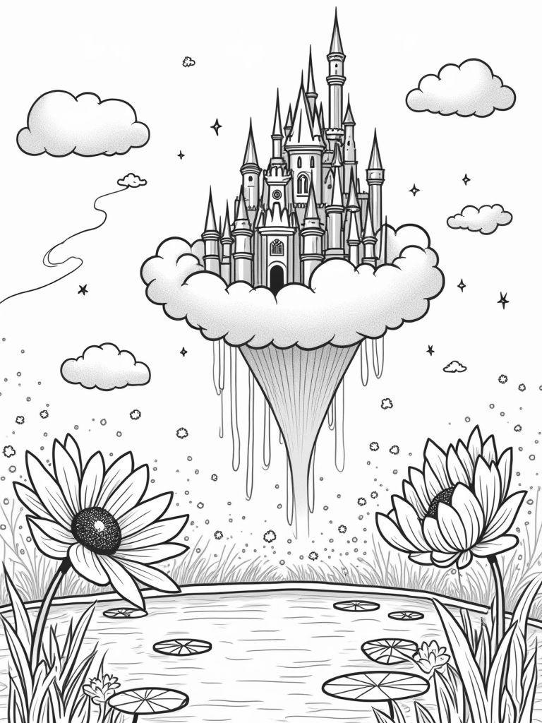 Crystal Castle in the Clouds Coloring Page