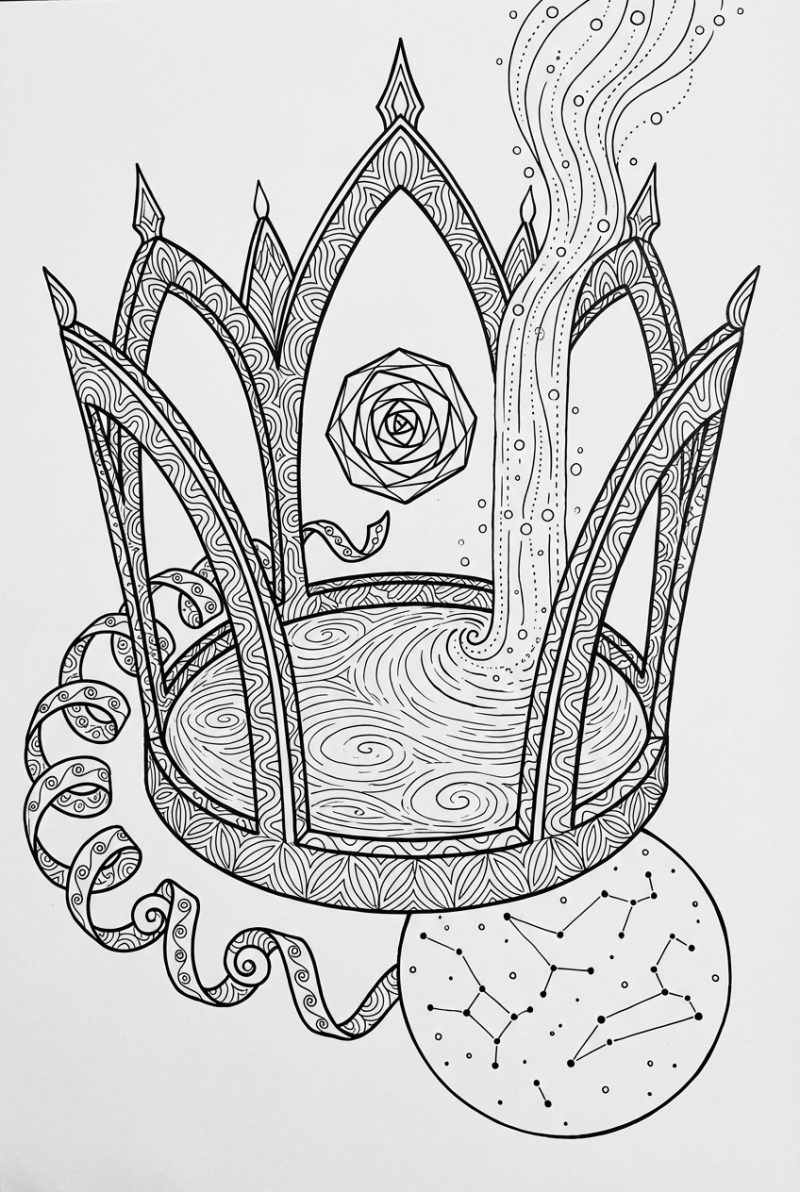 Try starting with the moon‑lit pond – a deep navy or dreamy teal can make the water feel magical. For the staircase, think of bright sapphire or even a rainbow of blues; the ribbons love a little shimmer, so don’t be shy with glitter pens. The jeweled rose looks gorgeous in pinks or reds, and the crown’s arches are a great place to experiment with pastel purples or silvers. And because the mirror reflects stars, you can dot tiny constellations with white or gold ink to give it that extra sparkle.