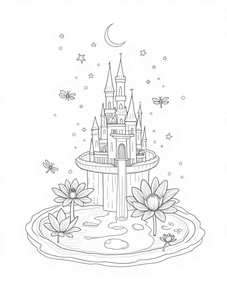 Check out this free, printable coloring page featuring a magical floating castle on a lily pad! Perfect for kids who love princess themes, this design is sure to spark creativity and fun.