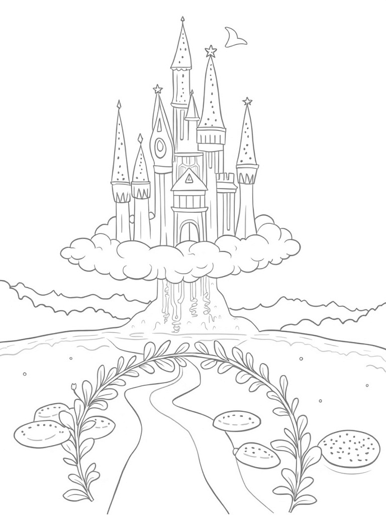 Flower Tower Castle in the Clouds Coloring Page