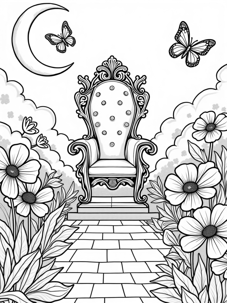 Check out this free printable coloring page featuring a royal throne in a whimsical garden filled with oversized flowers and butterflies. Perfect for kids who love princesses and fairy tales, it’s a delightful coloring activity that will inspire creativity!