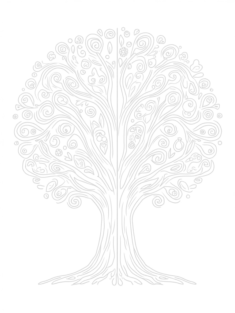Four Seasons Tree Illustration Coloring Page